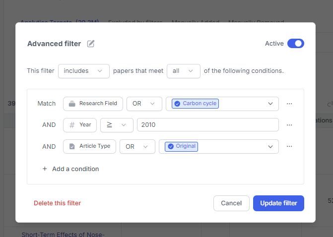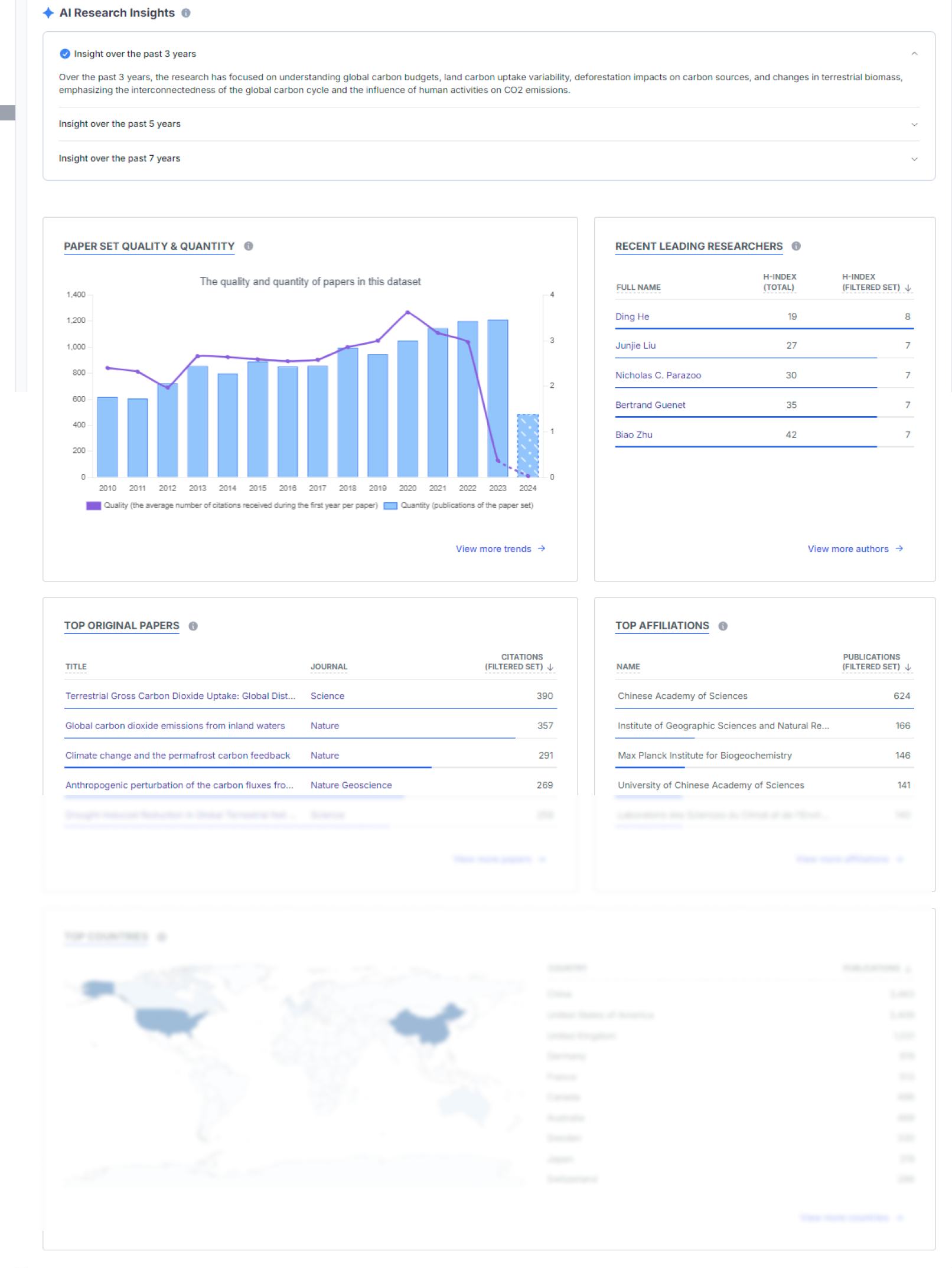 Simply create a custom filter based on your specific research needs. For example, if you want to explore trends in the “carbon cycle” and focus on original articles published after 2010, the platform’s powerful field analysis tools will give you a snapshot of the current state of research, empowering you to navigate your research more strategically.