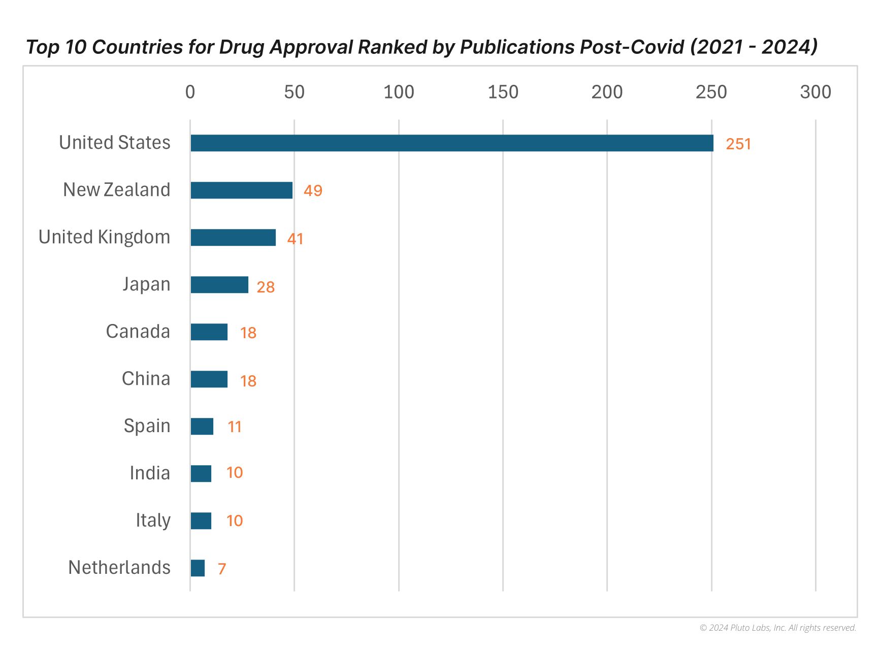 Publication Trends on Drug Approval and Top Publication Countries & Commercial Companies (2021-2024)